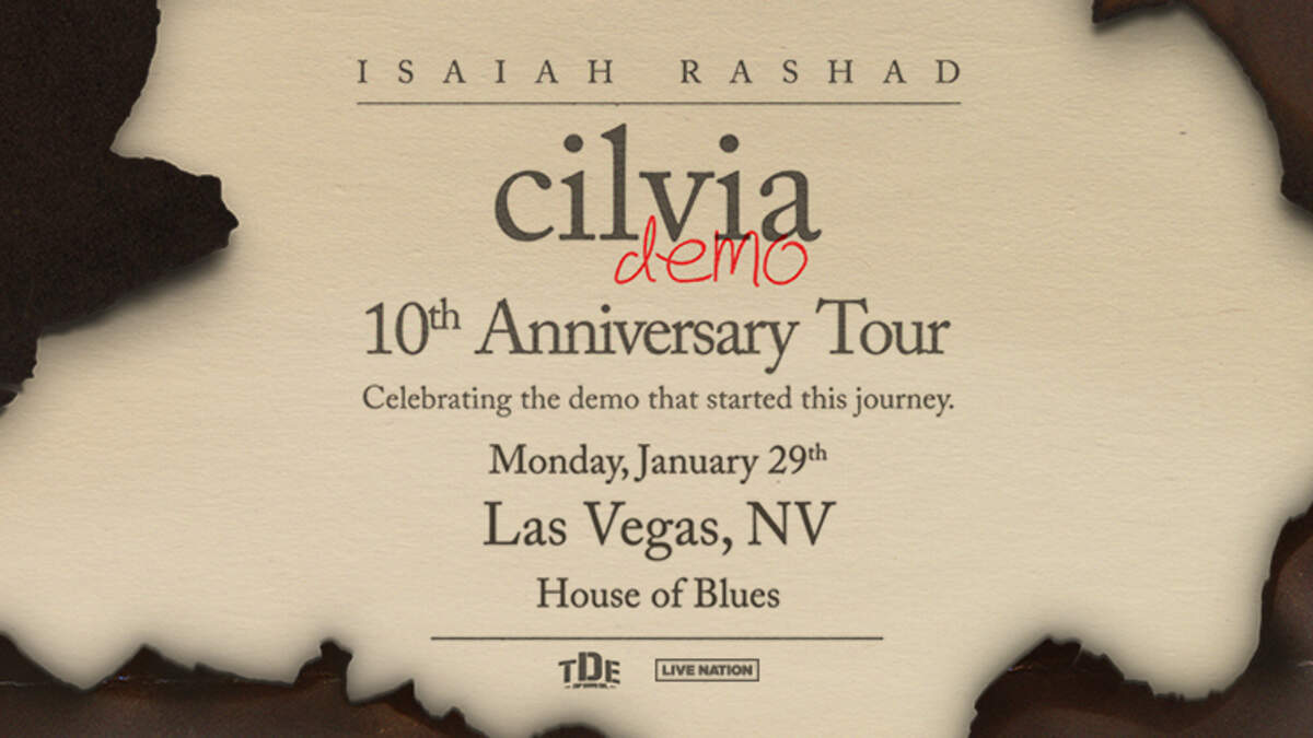 Isaiah Rashad is coming to Las Vegas to perform his Cilvia Demo 10 Year Anniversary Tour! On January 29, 2024, Isaiah Rashad will be performing at the House of Blues inside Mandalay Bay. Purchase your tickets now at https://www.ticketmaster.com/event/17005F8630047ED4